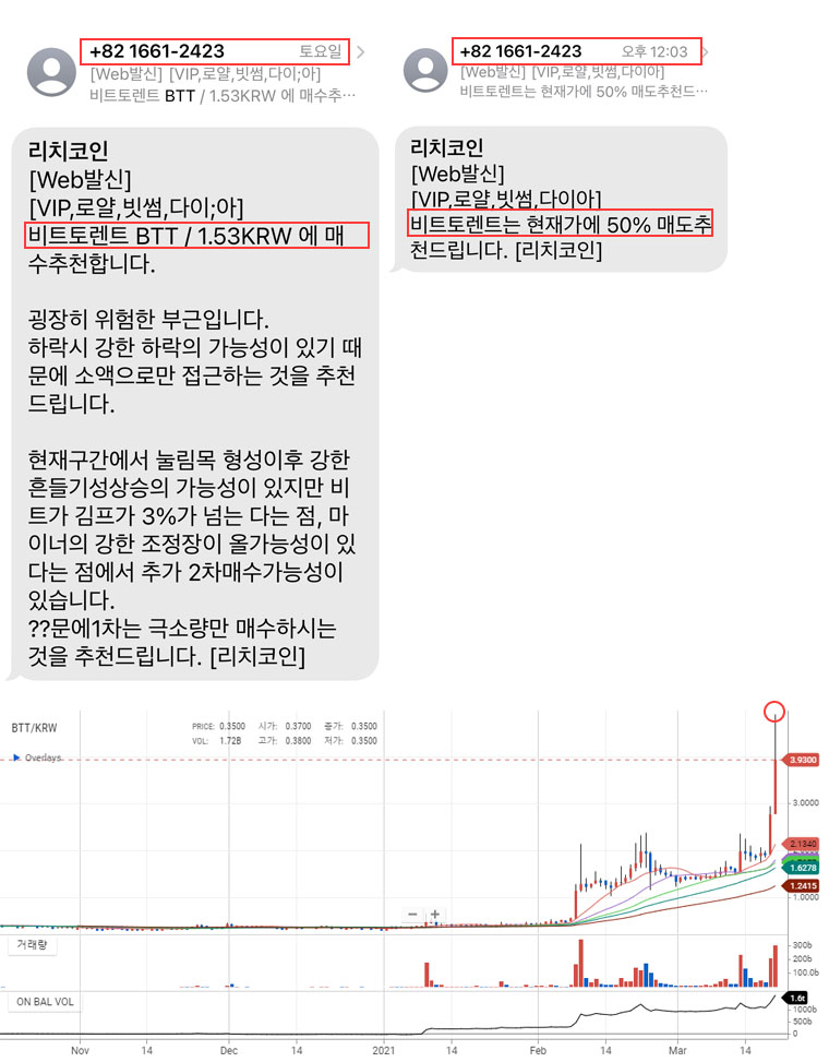 비트토렌트 219.60% 수익 축하드립니다.(추천문자사진 첨부)-절반매도